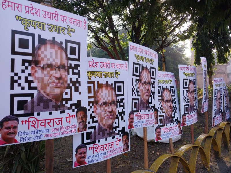 इंदौर. प्रदेश सरकार के विकास कामों के लिए लगातार कर्जा लेने के खिलाफ कांग्रेस ने मोर्चा खोल दिया है। कांग्रेस ने रीगल तिराहे पर गुरूवार को पोस्टर लगाए जिन पर लिखा हुआ था सरकार उधारी पर चलती है, कृपया उधार दें।रीगल तिराहे की रोटरी और उसके आसपास शिवराज पे के नाम से पोस्टर जारी किए गए। इनमें क्यूआर कोड जारी किया गया है। साथ ही मुख्यमंत्री का फोटो भी लगा हुआ है। पोस्टर लगाने वाले शहर कांग्रेस प्रवक्ता विवेक खंडेलवाल, मोर्चा संगठन प्रभारी देवेंद्रसिंह यादव सहित अन्य नेताओं ने बताया कि प्रदेश सरकार हर माह 400 करोड़ का कर्जा ले रही है। प्रदेश सरकार अपने सालाना बजट से जायदा उधार ले रही है। सरकार हर महीने 400 करोड़ बाजार से उधार ले रही है, अगर सरकार इसी तरह लोन लेती रही तो वो दिन दूर नही जब प्रदेश के हर व्यक्ति के सर पर 1 लाख रूपये का कर्ज हो। सरकार 22 हजार करोड़ तो सिर्फ ब्याज में दे रही है। प्रदेश में अब तक की सबसे ज्यादा बेरोजगारी है,करीब इसी वर्ष 6 लाख लोग बेरोजगार हुए है, 33 लाख पंजीकृत बेरोजगार है। ओर केंद्र का पोर्टल बता रहा है, प्रदेश में 1 करोड़ से ज्यादा बेरोजगार है। 1 लाख नोकरी देने की घोषणा पर प्रदेश सरकार ने मार्केटिंग पर करोड़ो फूंक दिए, मगर नोकरी 1 को नही मिली। वहीं दूसरी ओर प्रदेश सरकार योजनाओं की मार्केटिंग पर करोड़ो पर खर्चा कर रही है। सरकार उधार लेकर घी पी रही है, मुख्यमंत्री कार्यक्रमों में घोषणा करते है, ओर घोषणा की मार्केटिंग के लिए करोड़ों रूपये उधार लेकर विज्ञापन में लगा देते हैं। सरकार की इसी नीति के खिलाफ विरोध किया जा रहा है।