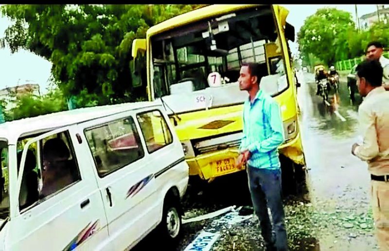 सिग्नल पर खड़ी वैन को प्रज्ञा गल्र्स स्कूल की बस ने पीछे से टक्कर मारी। घटना के बाद बस ड्राइवर फरार हो गया। वैन में बैठे बच्चे सीट से टकाराने सेे घायल हो गए। जल्द बच्चों और उनके पालकों के बयान लेंगे। बस के ब्रेक फेल, मशीनरी व तकनीकी खामियों की जांच करवाई जाएगी। सीसीटीवी फुटेज जब्त करेंगे।?