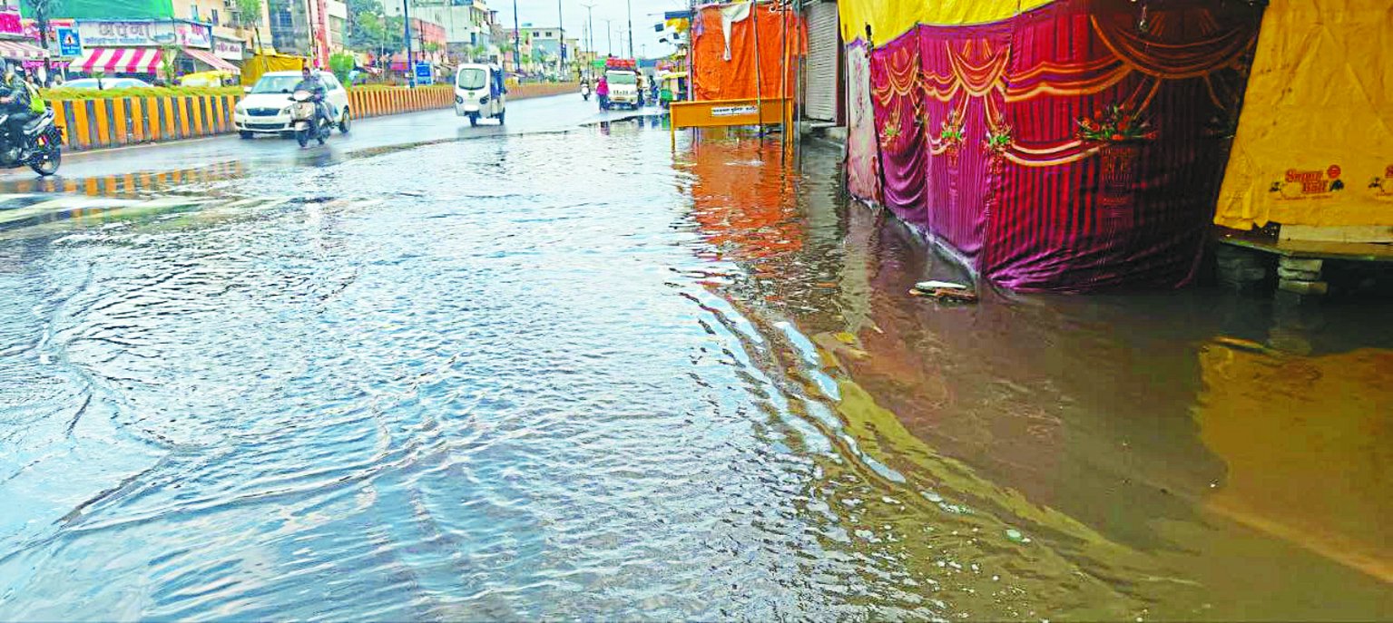 रातभर हुई बरसात...शहर की सडक़ों पर भरा पानी