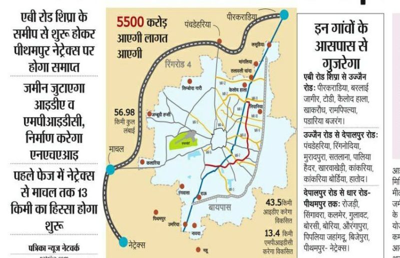 रिंग रोड - 4 - एबी रोड़ शिप्रा से नेट्रेक्स पीथमपुर तक एक्सप्रेस हाई-वे , मिलेगी 100 किमी की रफ्तार