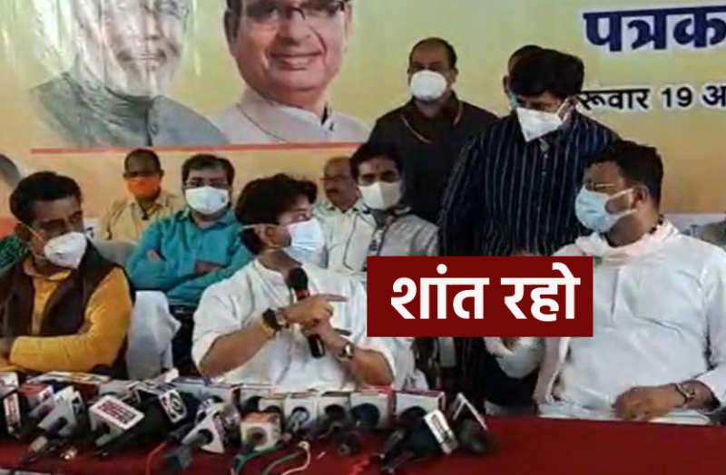 गुरुवार को जब केंद्रीय मंत्री ज्योतिरादित्य सिंधिया जन आशीर्वाद यात्रा के दौरान सुबह इंदौर में प्रेस कांफ्रेंस को संबोधित कर रहे थे। वहां पर बीजेपी के स्थानीय नेता आकाश विजयवर्गीय भी मौजूद थे। तभी आकाश विजयवर्गीय और नगर अध्यक्ष गौरव रणदिवे आपस में बात करने लगे, ऐसा बार-बार होने पर सिंधिया ने तुरंत हस्तक्षेप करते हुए बातचीत करने से टोक दिया। कहां- शांत रहे। सिंधिया के इतना कहने पर आकाश प्रेस कांफ्रेंस छोड़कर बाहर चले गए।