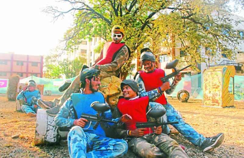 इंदौर. जंगी मैदान... ब्लू और ग्रीन आर्मी ड्रेस में गोलियां बरसाते स्टूडेंट्स। हाथों में झंडा था और भारत माता की जय-जयकार के नारे। इन सब की एक ही मंशा थी दुश्मनों के एरिया को कब्जे में लेना। हाथों में झंडा लिए टीम का लीडर आगे बढ़ता गया तो पीछे टीम मेंबर्स कवर फायर दे रहे थे। मौका था एसजीएसआईटीएस कॉलेज में हुए आयाम फेस्ट के सबसे रोमांचक कॉम्पीटिशन ‘रणभूमि’ का। शहर के २० कॉलेज ने इसमें पार्टिसिपेट किया। हर कॉलेज की टीम के हेड के पास झंडा था, जिसे उसे दूसरे के एरिया में जाकर लहराना था। गोलियों के बदले रायफल्स में पेंट बॉल्स थी। इन्हें भी ऑर्गनिक कलर्स से ही भरा गया था।