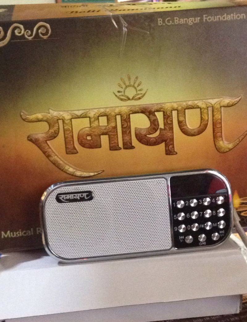 वाल्मिकी और तुलसीदास द्वारा रचित रामायण समग्र रूप से ग्रंथो के रूप में उपलब्ध है जिन्हें पढ़ा और सुना जा सकता है। लेकिन अब व्यस्त जिंदगी में ऐसा कम ही घरों में हो रहा है। इस परेशानी को हल करने के लिए अब एक बोलती रामायण उपलब्ध है। जिसमें रामचरित मानस के सात कांड शामिल किए गए है। इसे एक बटन दबाकर संगीतमय स्वर में सुना जा सकता है। पत्रिका के पुस्तक मेले में इन दिनों बोलती रामायण उपलब्ध है। एक बार जो बोलती रामायण सुन लेता है वह उसे खरीदे बगैर नहीं रह पा रहा है। रामसेवा भावी दम्पत्ति अभय माहेश्वरी और श्रीकांता माहेश्वरी पुस्तक मेले में लेकर आए है। दोनों वैसे तो पेशे से कंपनी सेक्रेटरी है और इन दिनों जनकल्याण के उ²ेश्य से अपने पेशे के साथ ही रामायण के चमत्कारिक प्रभावों का प्रचार कर घर-घर में रामायण के पाठ के लिए प्रेरित कर रहे है। उनका उ²ेश्य रामायण के संदेश को जन-जन तक पहुंचाया जा सके। एक बटन दबाकर सुने तुलसी रामायणदशहरा मैदान में चल रहे पत्रिका के मेले में बोलती रामायण के चर्चे जोरों पर है। यहां डोम एक में स्टाल नंबर पांच पर बोलती रामायण को लेकर अधिक भीड़ देखी जा सकती है। एक डिवाइस पर मात्र एक बटन दबाकर तुलसी रामायण के सातों काण्ड संगीतमय स्वर में सुने जा सकते है। मेला अधिकारी ने बताया कि प्रयास संस्था की टीम ने जिस तरह से बोलती रामायण का स्टाल लगाया है उसको लेकर जनता में काफी उत्साह है। ३ फरवरी तक यह उपलब्ध है। मोबाइल के आकार का डिवाइसअभय माहेश्वरी ने बताया कि इस डिवाइस में तुलसी रामायण का अक्षरश: गायन अजय मूंधड़ा के मधुर स्वरों में रिकार्डेड है। बालकाण्ड से उत्तर काण्ड तक की समस्त चौपाई और दोहे इसमें सम्पुट सहित उपलब्ध है। विशेषता ये है कि 21 घंटे की अवधि वाले इस सम्पूर्ण रामायण अखंड पाठ में से कोई चाहे तो सुंदरकाण्ड या अन्य कोई भी काण्ड, प्रसंग अलग से भी सुन सकता है। इस डिवाइस के सुमधुर रामायण पाठ से वातावरण में सकरात्मक उर्जा प्रवाहित होती है जो मन को देती है असीम शांति और तनाव मुक्त करती है। मोबाई के आकार का डिवाईस होने से कहीं पर भी ले जाने में आसानी होती है। यह डिवाइस बाज़ार में अन्यत्र उपलब्ध नहीं है क्योंकि लागत कम रखने और गुणवत्ता बनाए रखने के लिए प्रयास संस्था इसे अपने स्वयंसेवको के माध्यम से लागत मूल्य पर ही उपलब्ध करा रही है। बिना लाभ के जुटे दम्पत्ति श्री सीमेंट के चेयरमेन समाजसेवी बेनु गोपाल बांगड़ की परिकल्पना से ये रामायण गायन करवाया गया। तीन साल से पूरे भारतवर्ष में इसके प्रचार का प्रयास किया जा रहा है। माहेश्वरी दम्पत्ति बिना लाभ के बोलती रामायण के माध्यम से घर-घर में रामायण और उसके संदेश को पहुंचाने में जुटे है।