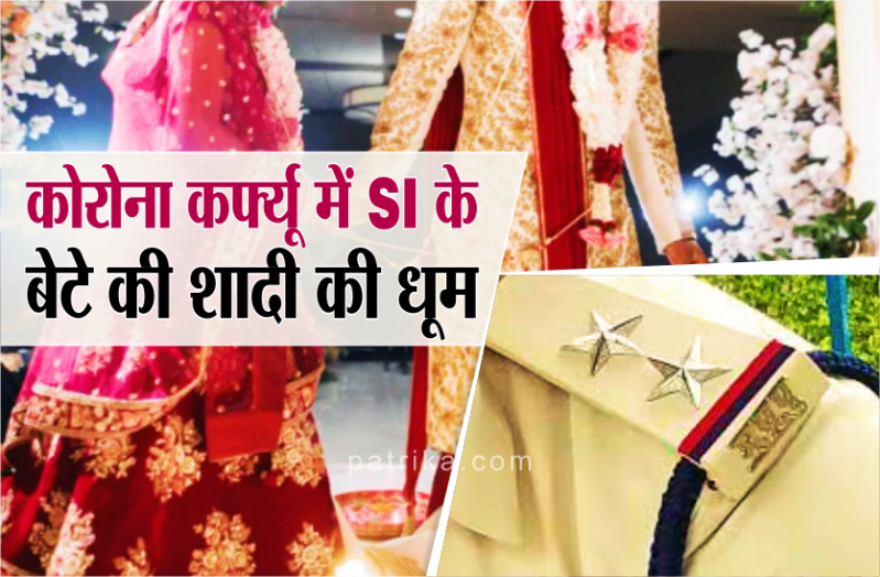 कोरोना कर्फ्यू में शादी समारोह के प्रतिबंधित होने के बावजूद एसआई के बेटे की शादी धूमधाम से किए जाने का मामला इंदौर शहर का है जहां एरोड्रम थाना क्षेत्र में थाने में ही पदस्थ एसआई राजेश गौड़ ने 17 मई को अपने बेटे की धूमधाम से शादी की। एसआई राजेन्द्र गौड़ के बेटे की शादी में कोरोना गाइडलाइन को धता बताते हुए बड़ी संख्या में लोग तो शामिल हुई ही साथ ही कोरोना गाइड लाइन का पालन कराने वाली पुलिस भी मेहमान बनकर पहुंची। थाने का स्टाफ शादी में शरीक हुआ और एसआई के बेटे व बहू को आशीर्वाद दिया।