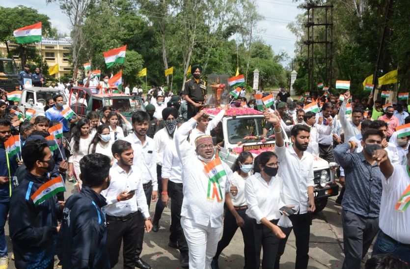 डीएवीवी के तक्षशिला परिसर में खुली जीप पर लाई गई मशाल की भव्य आगवानी की गई। विद्यार्थियों व शिक्षकों ने मशाल व सैनिकों पर फूलों की बरसात करते हुए हिंदुस्तान जिंदाबाद के नारे लगाए। इस दौरान कुलपति प्रो.रेणु जैन भी खुली जीप में सवार हुई। रैली के रूप में सभी यूनिवर्सिटी ऑडिटोरियम तक पहुंचे। ऑडिटोरियम में युद्ध के संस्मरण साझा करते हुए मसंद ने कहा कि हमें पता था कि कुछ बड़ा होने वाला है। उस समय पाकिस्तानी सेना ने पूर्वी पाकिस्तान में ऑपरेशन सर्च लाइट शुरू कर दी थी और वहां से प्रवासी भारत आने लगे थे और भयानक कहानियां सुना रहे थे। पाकिस्तानी वायु सेना ने 4 दिसंबर को भारत के पश्चिमी हिस्सों में हमारे 11 हवाई अड्डों पर हमला किया। अगले ही दिन हमने पूर्वी पाकिस्तान के हवाई अड्डों पर हमले शुरू कर दिए। कुछ ही दिनों में हम उनके सभी हवाई अडड्डे नष्ट कर चुके थे। 15 दिसंबर को जब हमने ढाका में गवर्नर हाउस पर हमला किया तो तत्कालीन गवर्नर अब्दुल मोटालेब मलिक कथित तौर पर एक टेबल के अंदर छिप गया और वहां से ही इस्तीफा लिख दिया। इस मौके पर कुलपति प्रो.रेणु जैन ने कहा हमें अपने देश की सेना पर गर्व है। भारतीय सेना दुनिया में बेजोड़ा है और जब-जब देश खतरे में आया तब सैनिकों ने जान की बाजी दांव पर लगाते हुए किला लड़ाया है।