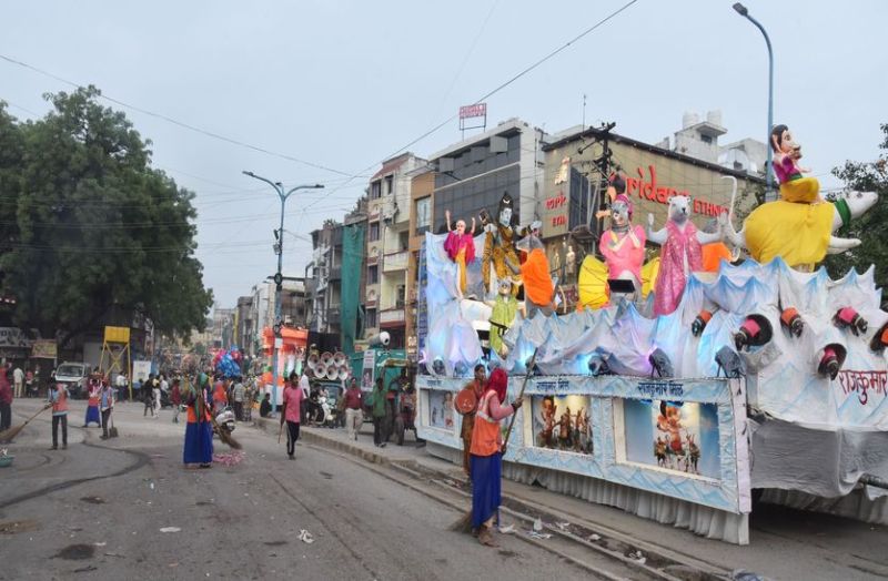 कोरोना संक्रमण काल के दो वर्ष बाद कल अनंत चतुदर्शी पर झांकियों का कारवां निकला। झांकियां निकलने की शुरुआत कल शाम 6 बजे भंडारी मिल ब्रिज से हुई और अपने-अपने मुकाम पर आज सुबह 8.30 बजे पहुंचीं। जिन रूट पर से झांकियां निकल गई थीं, उन पर सुबह 7 बजे से सफाई के लिए निगम स्वास्थ्य विभाग का अमला उतर गया। सफाईकर्मियों के साथ छोटी स्वीपिंग मशीन को भी लगाया गया, ताकि जल्द से जल्द सफाई हो जाए। कर्मचारियों ने झांकी मार्ग से लेकर आसपास की गलियों में हुए कचरों के ढेर लगा दिए। इनको हाथोहाथ उठाने के लिए छोटी गाडिय़ां लगाई गईं।