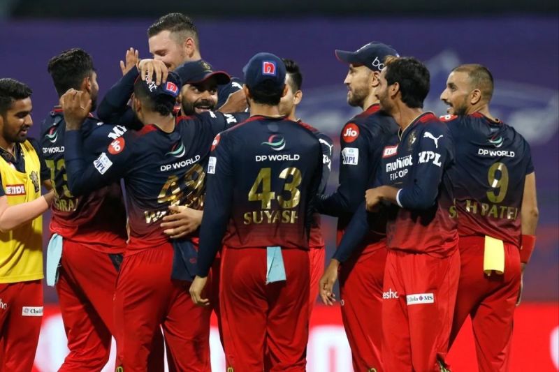 मैच जीतने के बाद ख़ुशी मनाते बैंगलोर के खिलाडी
