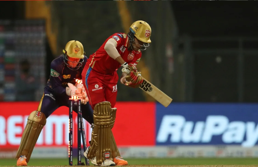 पेसर उमेश यादव ने पंजाब को पहले ही ओवर में बड़ा झटका दिया। पंजाब के कप्तान मयंक अग्रवाल एक रन बनाकर lbw आउट कर पवेलियन लौट गए। भानुका राजपक्षा ने 9 गेंद खेलकर 3 चौके और इतने ही सिक्स जड़ते हुए 31 रन का योगदान दिया। कगिसो रबाडा ने तूफानी पारी खेलते हुए 16 गेंदों में 25 रन जोड़े। जिसमें 1 सिक्स और 4 चौके शामिल है। वहीं शिखर धवन 16 रन बनाकर कैचआउट हो गए। पंजाब को चौथा झटका लियाम लिविंगस्टोन के रूप में लगा लियाम 19 रन बनाकर पवेलियन लौट गए। वहीं शाहरुख खान और राहुल चाहर बिना खाता खोले ही आउट हो गए। इसके बाद हरप्रीत बरार ने 14 रन जोड़े। राज बावा 11 रन की पारी खेल कर चलते बने।