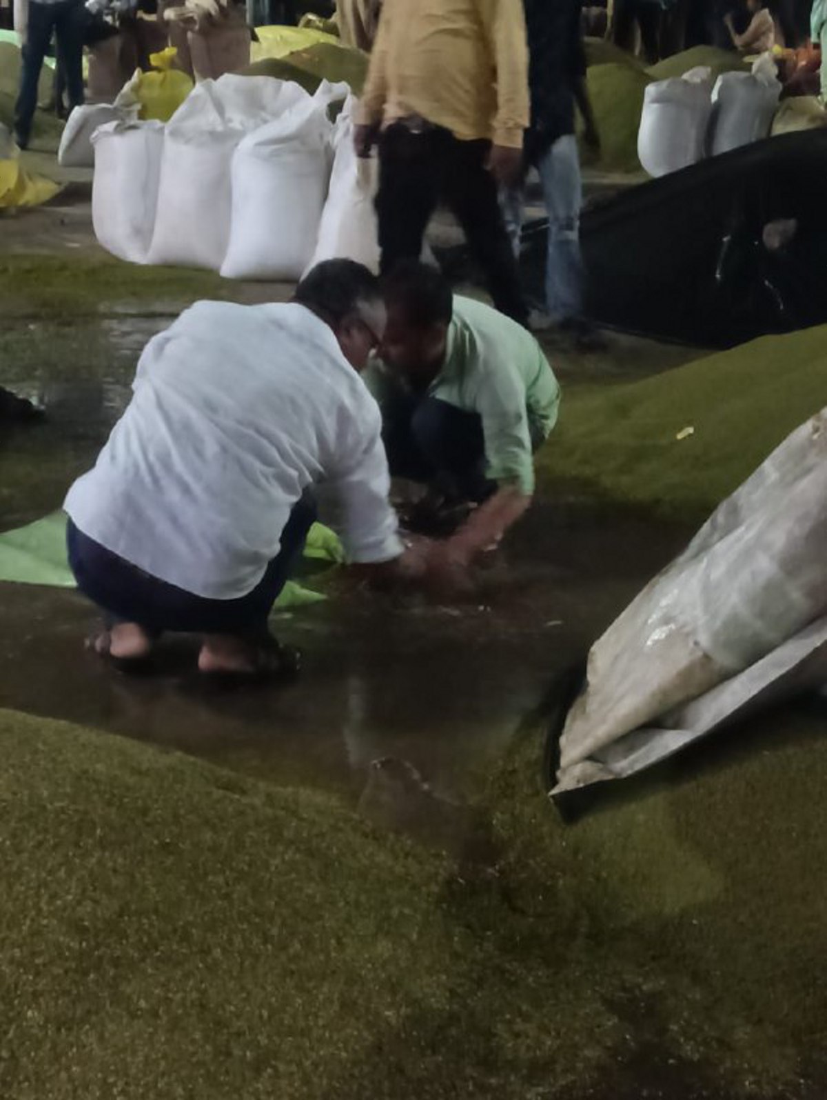 अचानक हुई तेज बारिश से मंडी में रखा किसानों का अनाज भीगा