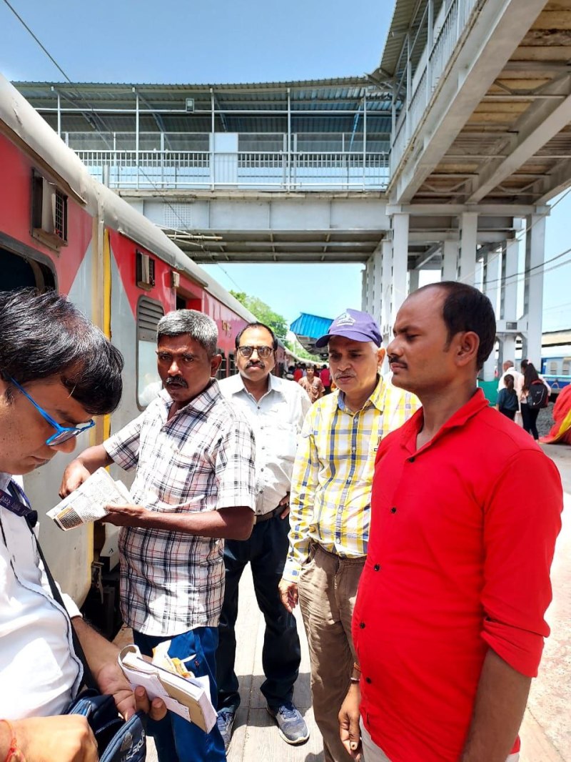शुक्रवार सुबह 6 बजे से दोपहर 2 बजे तक सहायक वाणिज्य प्रबंधक एसीएम केएन द्विवेदी के नेतृत्व में टिकट चेकिंग प्लेटफार्मों के अलावा दोनों फूटओवरबिज्र पर की गई। दल के साथ 08 आरपीएफ जवान भी मौजूद रहे।