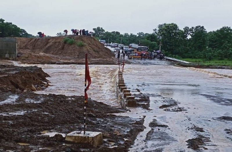 पुल पर कई फीट पानी से मार्ग बंद