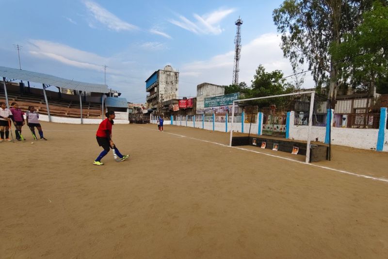 अक्सर आपने देखा होगा कि हॉकी में खिलाड़ियों का अंतिम लक्ष्य गोल ही होता है, लेकिन गुरुवार को गोल पोस्ट के अंदर विजय शाह का पोस्टर ही उनका लक्ष्य था।
