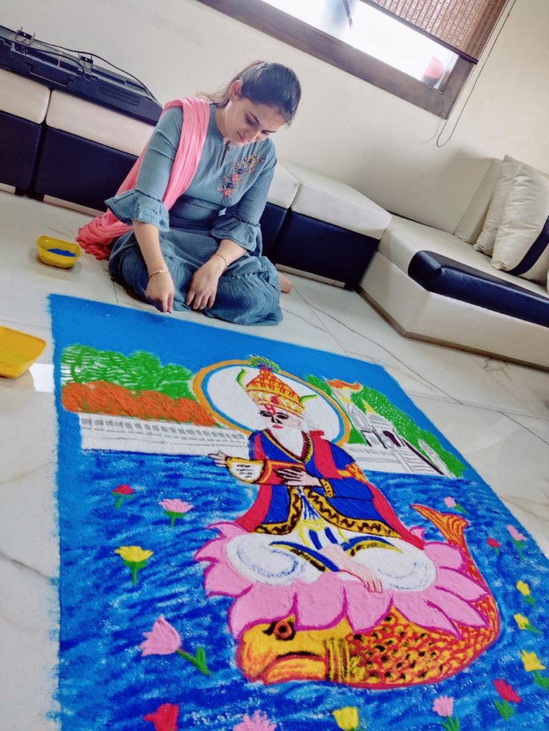 सिंधी समाज की महिलाओं ने सजाई सुंदर रंगोली, युवाओं ने निकाली वाहन रैली