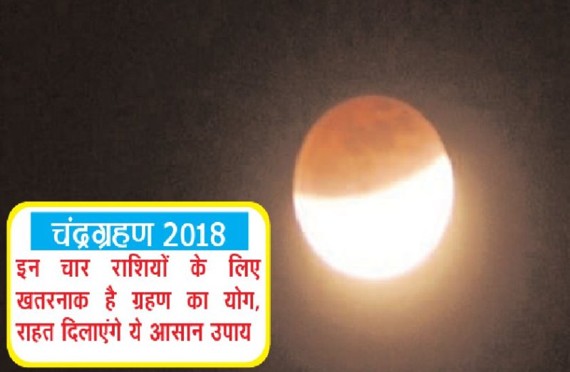 जबलपुर। भारतीय वैदिक परम्परा को मानने वालों के लिए ग्रहणकाल हमेशा से कौतूहल और जिज्ञासा का विषय रहा है। वर्ष 2018 ऐसा साल है जिसमें दो बार चंद्रग्रहण के योग बने हैं। एक चंद्रग्रहण 31 जनवरी को हो चुका है। दूसरा खग्रास चंद्रग्रहण आषाढ़ शुक्ल पक्ष की पूर्णिमा पर 27 जुलाई शुक्रवार को है। ग्रहण पर कुछ योग ऐसे हैं जो करीब 104 वर्षों बाद बन रहे हैं। स्पर्श से लेकर मोक्षकाल तक इसका समय 3 घंटे 54 मिनट 33 सेकेंड का रहेगा। यही कारण है कि इस चंद्रग्रहण को सदी का सबसे बड़ा चंद्र ग्रहण माना जा रहा है। यह मध्य रात्रि के बाद तक पूरे भारत में दिखाई देगा। ज्योतिषाचार्य पं. जनार्दन शुक्ल के अनुसार यह ग्रहण शनि की प्रभावित चार राशियों के लिए अशुभ रहेगा। हालांकि छोटे-छोटे उपायों से ग्रहण के विपरीत असर को आसानी से कम किया जा सकता है। आइए आपको भी राशि के अनुसार उन उपायों से अवगत कराते हैं।
