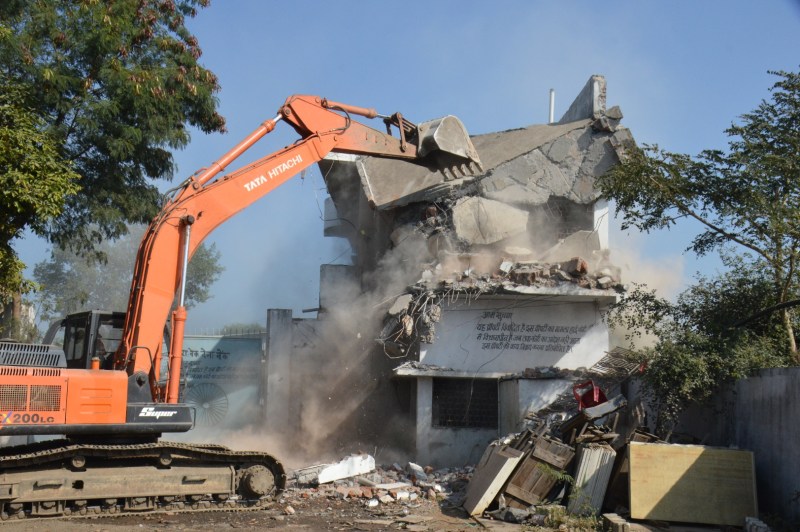 जबलपुर। हिस्ट्रीशीटर शमीम कबाड़ी का पनागर के खजरी में जमीन पर अवैध तरीके से बने हवेलीनुमा गोदाम का अवैध हिस्सा गुरुवार को जमींदोज कर दिया गया। शमीम के विरुद्ध गोहलपुर और सिविल लाइन थाने में धोखाधड़ी, मारपीट, तोड़-फोड़, रेलवे की संपत्ति पर कब्जा आदि के मामले दर्ज हैं। खजरी में खसरा 263/2 पर शमीम की ओर से पंचायत की बिना अनुमति के 800 वर्गफीट में अवैध निर्माण किया गया था। जिसकी कीमत करीब 1 करोड़ 50 लाख के लगभग है। बड़ी संख्या में तैनात पुलिस बल की मौजूदगी में एसडीएम नम: शिवाय अरजरिया की टीम ने अवैध निर्माण ध्वस्त कर दिया। इसी तरह से खजरी खिरिया में कबाड़ी नजर अली की ओर से अवैध तरीके से लगभग 25 लाख की लागत से 2500 वर्गफीट में बनाया गया गोदाम भी जमींदोज कर दिया गया। इधर संयुक्त टीम ने एक और कार्रवाई करते हुए तहसील अधारताल के ग्राम चांटी के खसरा 130/2 में बना दो मंजिला भवन के 86 वर्गफीट में बने अवैध हिस्से को ध्वस्त कर दिया गया।