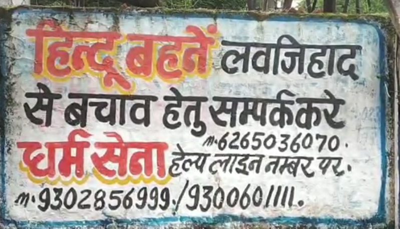 दीवारों पर लव जिहाद से बचाने के विज्ञापन
