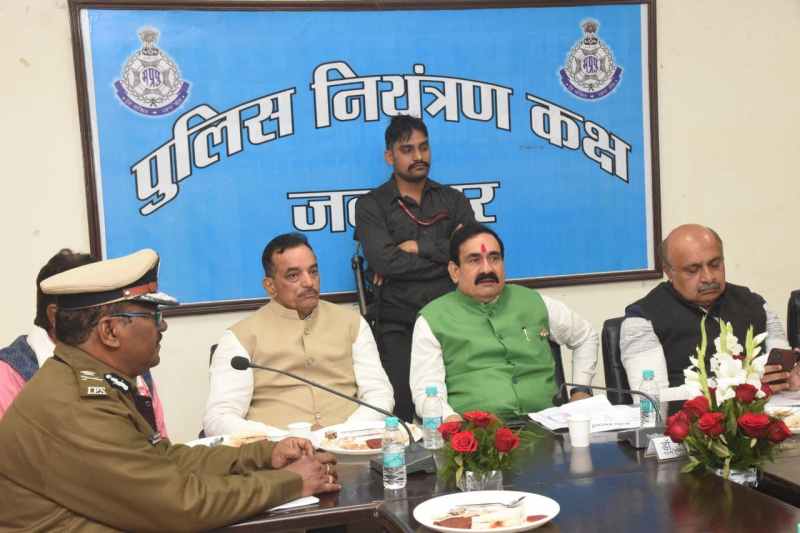 जबलपुर। गृह मंत्री डॉ नरोत्तम मिश्र ने अपराधों पर नियंत्रण पाने तथा माफिया एवं मिलावटखोरों के विरुद्ध की जा रही कार्यवाही के लिये जबलपुर पुलिस की सराहना की है । आज यहां जिले की कानून व्यवस्था की समीक्षा के लिये आयोजित बैठक को संबोधित करते हुये डॉ मिश्र ने कहा कि माफिया के विरुद्ध सख्ती लगातार बढ़ानी होगी । उन्होंने चिटफंड कम्पनियों को लेकर मिलने वाली शिकायतों पर भी और कठोर रवैय्या अपनाने के निर्देश पुलिस अधिकारियों को दिये हैं ।