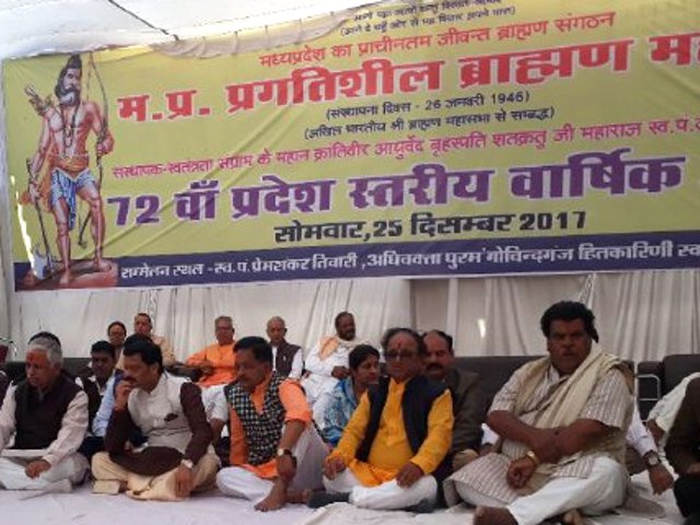 जबलपुर। मप्र प्रगतिशील ब्राम्हण महासभा के अधिवेशन में सोमवार को ब्राम्हणों की उपेक्षा का मुद्दा छाया रहा। हर वक्ता ने पीड़ा जाहिर की, कि राजनीतिक पार्टियां ब्राम्हण को धीरे धीरे हांसिए पर ले जा रही हैं। वरिष्ठ अधिकवक्ता आदर्शमुनि त्रिवेदी ने मंच से खुलकर कहा कि राजनीतिक पार्टियां ब्राह्मणों को हल्के में न लें, यदि ब्राह्मण जाग गया तो इसके गंभीर परिणाम सामने आएंगे। त्रिवेदी ने कहा कि ब्राह्मण कभी किसी का विरोधी नहीं रहा है। उसने कभी आरक्षण या अन्य समुदायों को मिल रहीं विशेष सुविधाओं को पर कभी आपत्ति नहीं जताई। ब्राह्मणों को अभी भी आरक्षण से गुरेज नहीं है। लेकिन सरकारें अब ब्राह्मण के हक को छीनने तक आमादा हो गई हैं। परंपरागततौर पर उसे मिला पूजन का अधिकार तक खतरे में नजर आ रहा है। सरकार को स्वयं चिंतन करना चाहिए। उसका यह रवैया कितना उचित है। इससे उन लोगों का क्या हाल होगा, जो सदियों से पूजन पाठ के सहारे ही अपने परिवार का उदर पोषण कर रहे हैं।