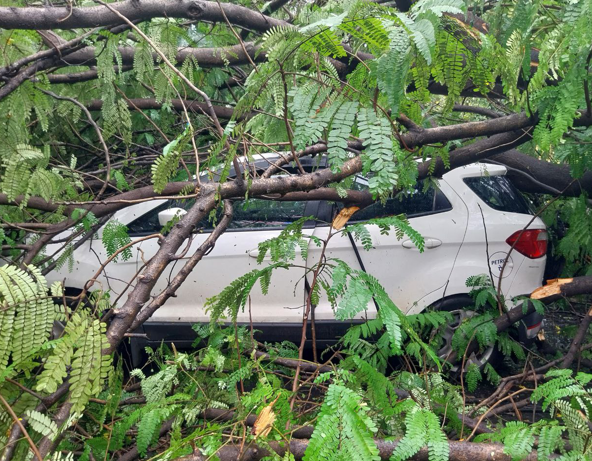 जबलपुर के इंदिरा मार्केट में जेल गेट के सामने एक बड़ा पेड़ गिर गया। इससे जहां यातायात ठप हो गया वहीं एक कार और ई रिक्शा पेड़ में दब गए। हादसे में कार चालक और रिक्शा सवार बाल बाल बच गए, उन्हें मामूली चोटें ही आईं। पेड़ गिरने से बिजली के तार भी टूट गए। जेल गेट की सड़क पर एक तरफ से यातायात बंद कर दिया गया।