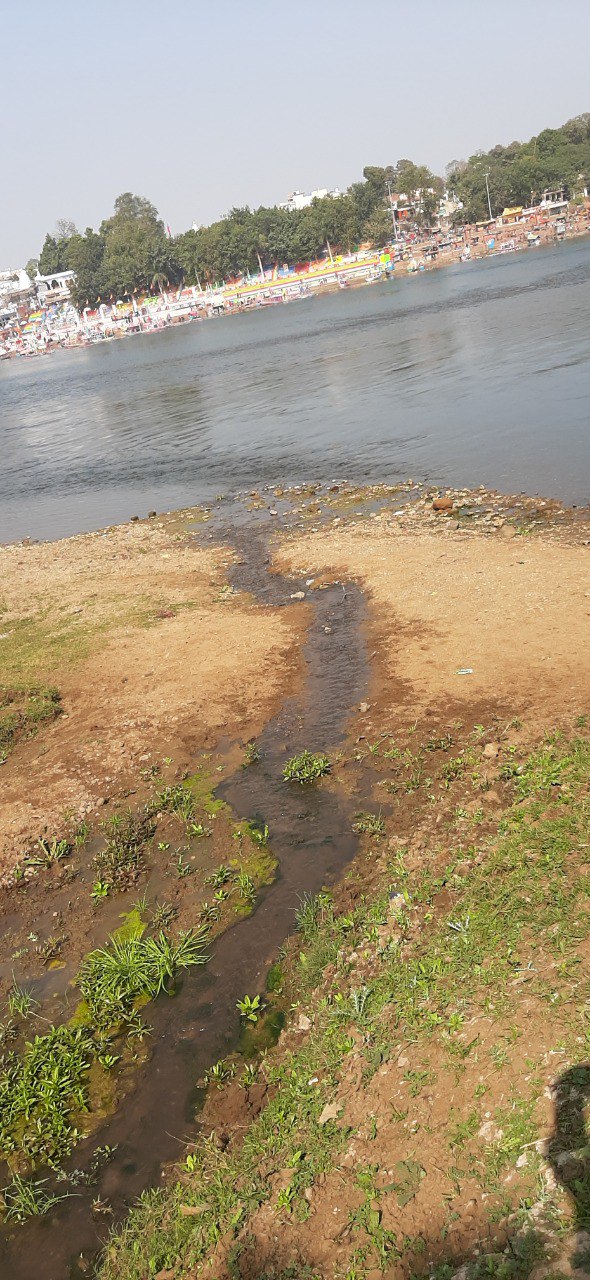 नर्मदा स्थित गुरूद्वारा से मात्र पांच सौ फीट पर यह नाला आकर नदी से मिल रहा है। नाले की पतली धार नदी से मिल रही है। नाले के किनारे वनस्पति भी नहीं उग पा रही है। पानी का रंग काला नजर आ रहा है।