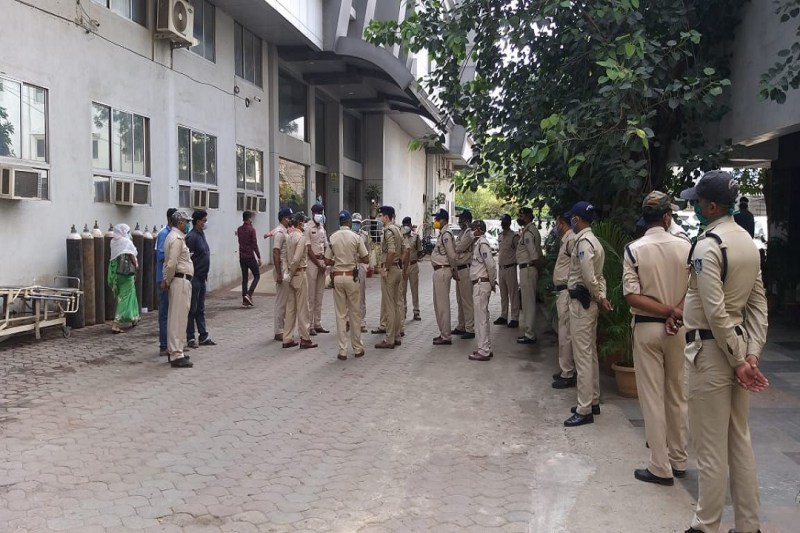कोरोना संक्रमित मेजर अभय नोरिया की मौत के बाद जमा पुलिसकर्मी
