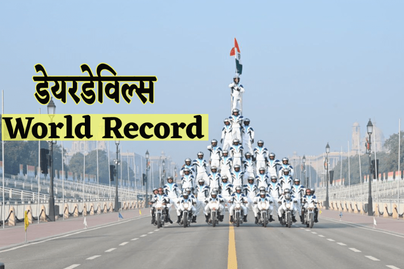 'डेयरडेविल्स'(Daredevils) मोटरसाइकिल राइडर डिस्प्ले टीम ने नई दिल्ली के कर्तव्य पथ पर चलती मोटरसाइकिलों पर सबसे ऊंचे मानव पिरामिड का विश्व रिकॉर्ड बनाकर एक ऐतिहासिक उपलब्धि हासिल की है। 20.4 फीट ऊंचे पिरामिड का निर्माण 7 मोटरसाइकिलों पर 40 लोगों द्वारा किया गया, जिसने विजय चौक से इंडिया गेट तक 2 किमी की दूरी तय की। इस प्रदर्शन का नेतृत्व कैप्टन आशीष राणा और कैप्टन डिंपल सिंह भाटी ने किया।