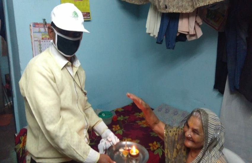 कमला नेहरू नगर व्यापारी संघ के अध्यक्ष धनंजय बाजपेयी ने मां की आरती उतार कर आशीर्वाद प्राप्त किया। उन्होंने सोशल डिस्टेंसिंग के साथ जरूरतमंदों में फल वितरित किया।