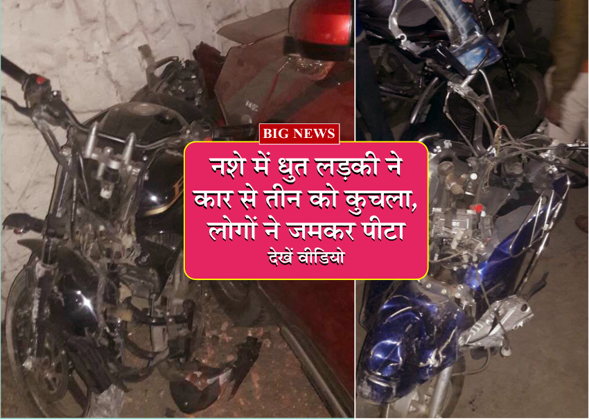 जबलपुर। एक युवती नशे की हालत में कार चला रही थी। तभी कार बहक गई और उसने दर्जनों गाडिय़ों को भेड़ते हुए तीन लोगों को कुचल दिया। फिर स्टेडियम की दीवार से जा टकराई। कार के कोहराम से पूरे क्षेत्र में दहशत फैल गई। वहीं मौजूद गुस्साए लोगों ने युवती के साथियों को जमकर पीटा, तभी युवती मौका देखकर भाग निकली। पीडि़तों ने मदन महल थाने में युवती समेत उसके दो अन्य साथियों के खिलाफ रिपोर्ट दर्ज कराई है।