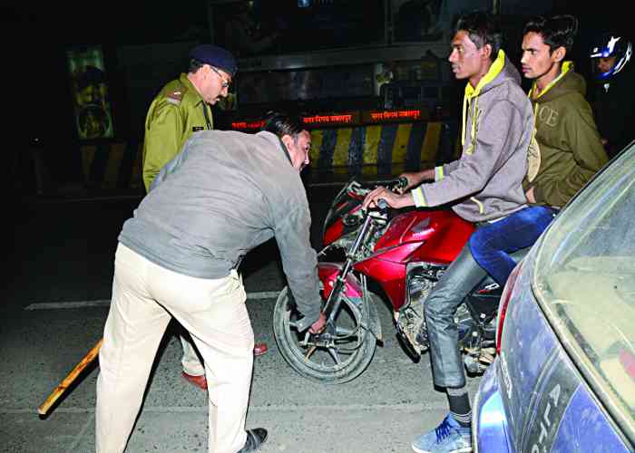 जबलपुर। पुलिस ने किसी वाहन चालक को ब्रीथ एनालाइजर से चैक कर एल्कोहल मापा, तो कहीं तेज रफ्तार भाग रहे बाइकर्स की बाइक की हवा निकाली। यह सब शुक्रवार रात शहर की सड़कों पर देखने को मिला। नववर्ष के पहले शहर के सभी थाना क्षेत्रों में चैकिंग की गई। चारपहिया वाहनों की भी सख्ती से जांच की गई। कार्रवाई से वाहन चालकों में हड़कम्प की स्थिति रही।