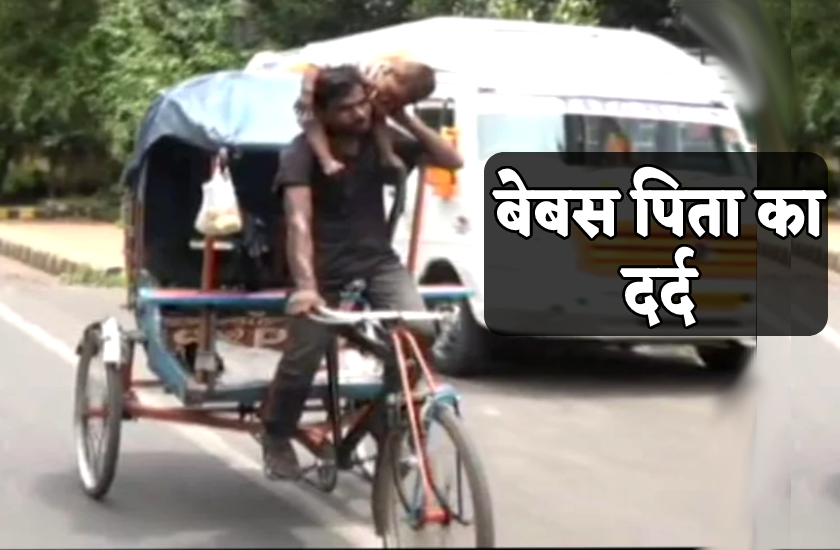 बेबस पिता का दर्द : डेढ़ साल के बेटे को कंधे पर बैठाकर रिक्शा चलाता है पिता, किसी और के साथ भाग गई बेवफा पत्नी