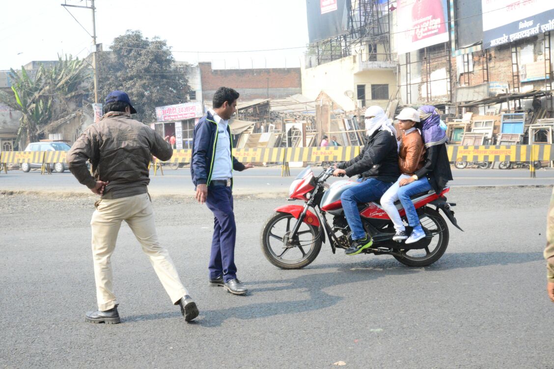 जबलपुर। बुधवार को छोटी लाइन के पास पुलिस जांच अभियान चल रहा था। इसी दौरान एक बाइक में सवार तीन नकाबपोश निकले। पुलिस ने तीनों को रोक लिया। जैसे ही नकाबपोशों ने नकाब हटाए पुलिस आश्चर्य चकित रह गई। दरसल पकड़े गए नकाबपोश लड़कियां थीं। पुलिस ने यातायात नियमों के उल्लंघन के लिए उन्हें फटकार भी लगाई। इसके बाद उन्हें जाने दिया गया।