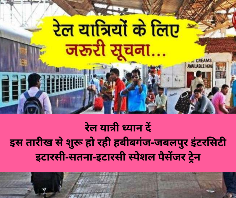 7 अप्रेल से शुरू होगी इटारसी-सतना-इटारसी स्पेशल पैसेंजर ट्रेन
