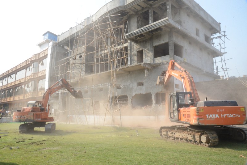 संयुक्त कलेक्टर एवं एसडीएम रांझी दिव्या अवस्थी ने बताया कि भू-माफिया एवं हिस्ट्रीशीटर गौरेयाघाट निवासी सुदर्शन उर्फ मुन्ना सोनकर की ओर से गौर नदी के किनारे बनाए गए रैनबसेरा रिसोर्ट के लॉन और इस रिसोर्ट से लगकर बनाए आलीशान भवन को ध्वस्त किया जा रहा है। लॉन में भव्य फव्वारे और दूसरी सजावटी सामान लगा था। उन्होंने बताया कि नदी के 100 मीटर के दायरे में कोई भी निर्माण करना प्रतिबंधित हैं। लेकिन यह निर्माण 100 मीटर के भीतर किया गया है। इस दौरान संयुक्त कलेक्टर एवं एसडीएम नम: शिवास अरजारिया, डीएसपी ग्रामीण अपूर्वा किलेदार, सीएसपी केंट भावना मरावी, तहसीलदार रांझी प्रदीप मिश्रा व नगर निगम का अतिक्रमण विरोधी दस्ता मौजूद था। पुलिस के मुताबिक मुन्ना सोनकर निगरानीशुदा बदमाश है। उस पर कई थाना क्षेत्रों में मारपीट, चोरी, जुआं-सट्टा, आबकारी एवं आम्र्स एक्ट के प्रकरण दर्ज हैं। उसके खिलाफ 14 बार प्रतिबंधात्मक कार्रवाई हो चुकी है।