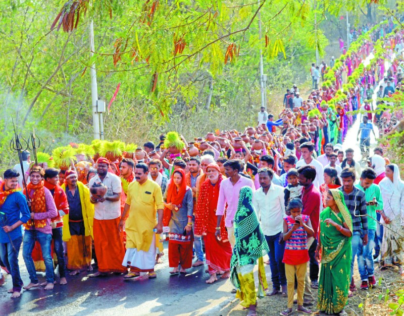 मंदिर में भगवती के श्रृंगार, महाआरती के बाद जुलूस निकाला गया। ज्योति, कलश सिर पर धारण करने के लिए मंदिर परिसर में दोपहर से ही मातृशक्ति उपस्थित थीं। इस दौरान ढोल मंजीरा के साथ भक्तिगीतों की प्रस्तुति में हर कोई भाव विभोर हो गया। तेज धूप के कारण दो बजे की बजाए शाम 4 बजे जुलूस निकाला गया। मंदिर से जुलूस शुरू हुआ तो एक किमी तक लोग ही लोग दिख रहे थे।