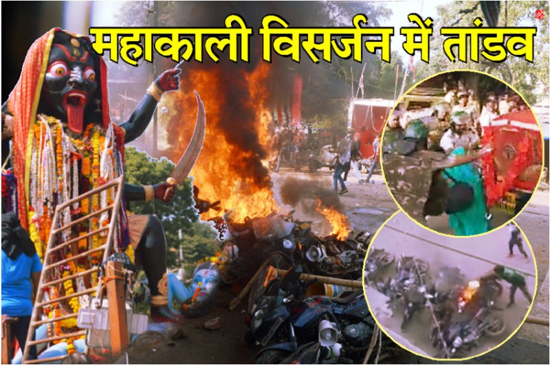 जबलपुर। जबलपुर की महारानी पड़ाव वाली महाकाली के विसर्जन में हुआ तांडव शहर में कभी न भूलने वाले पलों में कैद हो गया है। इसमें एक ओर जहां लोग पुलिस व प्रशासन पर अमानवीय होने का आरोप लगा रहे हैं। वहीं सोशल मीडिया पर वायरल हुए एक लाइव वीडियो से समिति व श्रद्धालुओं की पोल भी खुल गई है। इन दो वीडियो में समिति की मनमर्जी व भक्तों की उद्दंडता भी दिखाई दे रही है।