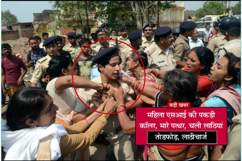 जबलपुर. चंडालभाटा से चार बार खाली हाथ लौट चुका नगर निगम का अमला बुधवार दोपहर १२ बजे कार्रवाई के लिए पहुंचा। अमले को देखते ही लोगों ने कार्रवाई का विरोध करते हुए पथराव शुरू कर दिया। इससे निगम का सुरक्षा गार्ड जुगल किशोर और एक अन्य कर्मी घायल हो गया। जेसीबी का कांच टूट गया। आक्रोशित महिला ने महिला एसआई से झूमाझटकी की, तो पुलिस ने लाठियां बरसाना शुरू कर दिया। इससे पथराव व विरोध कर रहे लोग गायब हो गए। स्थिति नियंत्रण में होने पर कार्रवाई शुरू हुई। शाम पांच बजे तक ९ आवासों को ध्वस्त कर दिया गया।