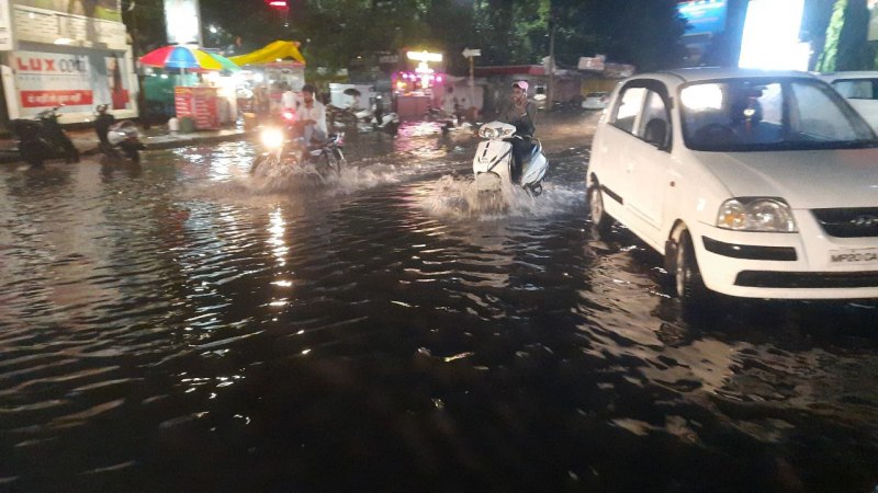 Monsoon heavy rain in the jabalpur city
