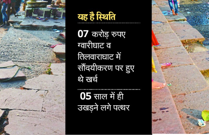 ग्वारीघाट व तिलवाराघाट में लाल पत्थर लगाए, लेकिन तटों में टूट-फू ट रोकने कोई व्यवस्था नहीं की गई। जिसकी मर्जी जहां होती, वहीं टेंट के लिए पाइप लगाने पत्थरों में तोड़-फोड़ शुरू कर देता है। तिलवाराघाट में अधिक टूट-फू ट हुई है।