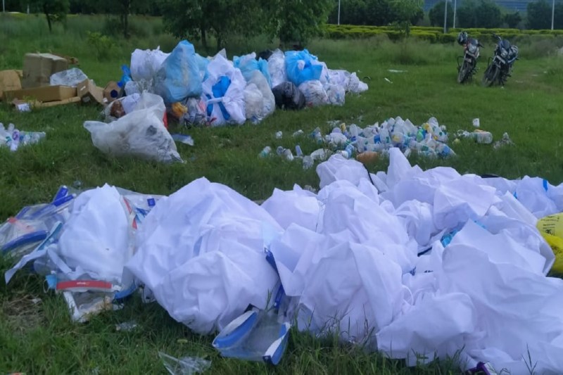 खुले में फेंके गए मास्क व पीपीई किट