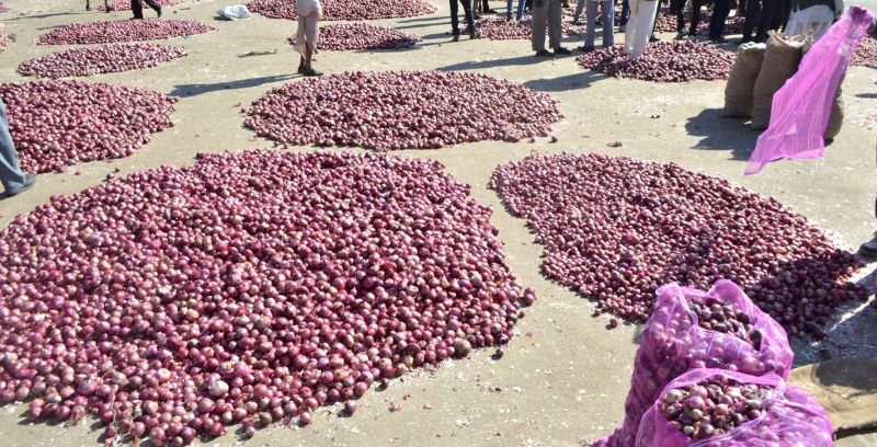 कृषि उपज मंडी में प्याज।