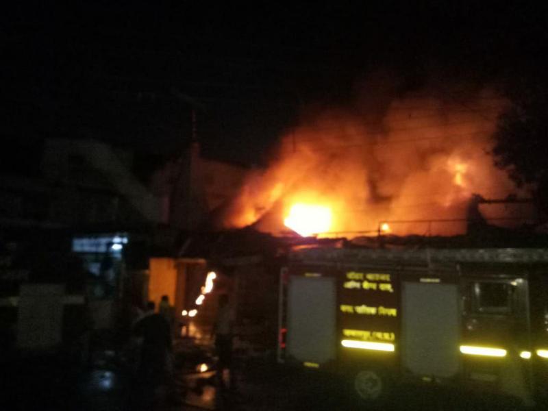 सदर गणेश चौक महाकाली के मंदिर के बाजू से देर रात आग लगने से हड़कंप मच गया। घटना की सूचना मिलने पर दमकल की गाड़ियां मौके पर पहुंची और आग बुझाने का प्रयास किया गया। बताया जाता है महाकाली मंदिर के बाजू से यूनाइटेड साइकिल की दुकान है। यह दुकान रात में बंद थी। रात करीब 12:45 बजे अचानक दुकान में आग लग गई। दुकान से ही सटकर एक हॉट चिप्स की भी दुकान थी जहां तक आग पहुंच गई प्रत्यक्षदर्शी बंटी शिवहरे, राजेश ने बताया कि हल्ला मचने पर छेत्रीय नागरिक भी जमा हो गए। दमकल विभाग को सूचित किया गया नागरिकों सहयोग से दमकल विभाग ने आग पर काबू पाने का प्रयास किया जा रहा था। क्योंकि दुकान में टायर टू के साथ अन्य सामग्री भी रखी होने के कारण चारों ओर धुंआ का गुब्बार दिखाई दे रहा था। यह दुकान अमन छावड़ा की बताई जाती है । आग से समान बुरी तरह जलकर नष्ट हो गया ।