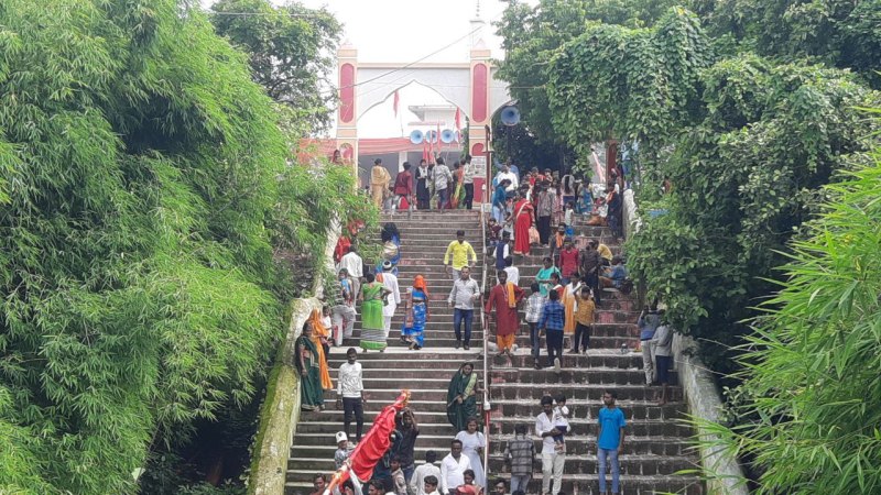 -शारदा मन्दिर में झंडा अर्पित करने बड़ी संख्या में पहुंचे भक्त, लगा मेला