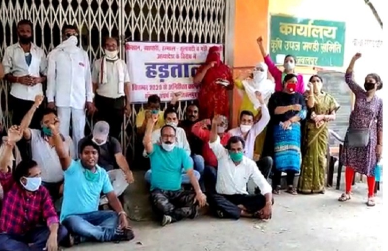 जबलपुर."द फार्म्स प्रोड्यूस ट्रेड एंड कॉमर्स अध्यादेश" के विरोध में कृषि मंडी कर्मचारियों और व्यापारियों की हड़ताल जारी है। व्यापारियों व कर्मचारियों ने मंडियों में पूर्ण तालाबंदी के साथ कामकाज पूरी तरह से ठप है। गुरुवार से शुरू ये हड़ताल 5 सितंबर तक जारी रखने का नोटिस दिया गया है।