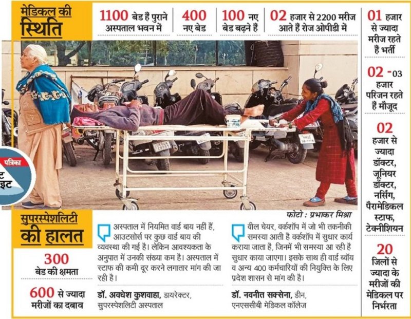 Superspeciality hospital : मेडिकल अस्पताल में मरीजों को स्ट्रेचर और व्हील चेयर मिलना मुश्किल है। मिल भी जाए तो उन्हें घसीटकर मरीजों के परिजन का दम फूल जाता है। दरअसल मेडिकल से लेकर सुपरस्पेशलिटी अस्पताल, न्यूरो सर्जरी एक्सीलेंस अस्पताल में वार्ड बाय की कमी है। अस्पताल प्रबंधन 4 साल से भर्ती की मांग कर रहा है लेकिन अब तक उनकी संया नहीं बढ़ी।