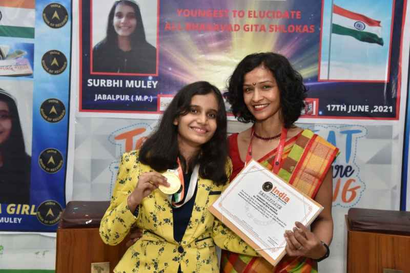 10वीं कक्षा की छात्रा सुरभि के पिता अखिल मुले ने बताया कि गुरुवार को उपवास होने के कारण उसने कुछ भी खाया-पीया नहीं था। निर्णायकों के जोर देने पर एक केला खिलाया गया। वे बेटी की इस उपलब्धि को शब्दों में बयां नहीं कर पा रहे थे। उन्होंने बताया कि सुरभि आठ वर्ष की उम्र से दादी विजया मुले से श्रीमद् भागवत गीता को अर्थ सहित पढऩा सीख रही है। वह लगातार 18 अध्यायों के 700 श्लोक सुना सकती है।