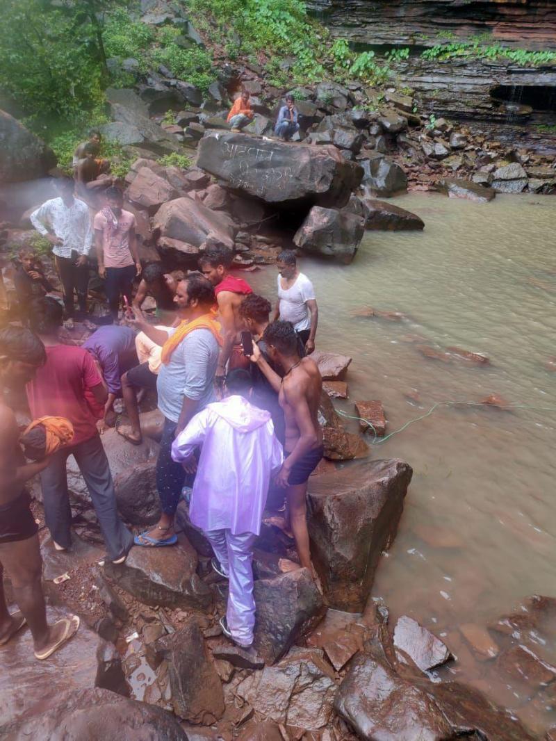 पुलिस के अनुसार संजीवनी नगर निवासी अर्पित गुप्ता प्राइवेट फैक्ट्री में काम करता था। रविवार को आईटीआई चुंगी नाका निवासी संदीप राय, अजय यादव, विकास बर्मन और एक अन्य के साथ निदान फाल घूमने गया था। छोटे निदान फल में पांचों दोस्त मस्ती कर रहे थे। सभी नहाने फाल में उतर रहे थे। तभी दोपहर ढाई बजे के लगभग पैर फिसलने से अर्पित फाल में गिर गया था। तब से उसकी तलाश चल रही थी। रविवार को अंधेरा होने के चलते सात बजे रेस्क्यू रोक देना पड़ा था। सोमवार सुबह होमगार्ड की टीम ने उसकी तलाश शुरू की। सुबह 11 बजे के लगभग उसकी लाश पत्थरों के बीच फंसी मिली। लाश मिलने के साथ ही परिजनों की उम्मीद भी टूट गई। पिता मनोज गुप्ता सहित मां व अन्य परिजनों का रो-रो कर बुरा हाल था।