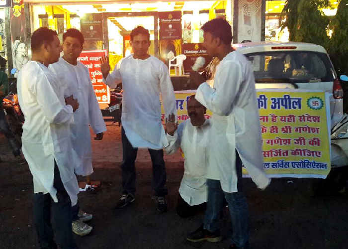शुक्रवार की शाम सामाजिक संगठन के कलाकारों ने अपने पांच दिनी अभियान के अंतर्गत सिविक सेंटर में शाम नुक्कड़ नाटक का प्रदर्शन किया। इस कार्यक्रम के जरिए कलाकारों ने लोगों को प्लास्टर ऑफ पेरिस और केमिकलयुक्त रंगों से तैयार गणेश प्रतिमाओं के नर्मदा में विसर्जन से जलीय जीवों पर न सिर्फ दुष्प्रभाव की जानकारी दी बल्कि घर-घर स्वयं प्रथम पूज्य भगवान गणेश की प्रतिमाएं बनाने के लिए प्रेरित किया। कलाकारों ने सिविक सेंटर के साथ ही मदन महल, छोटी लाइन व गोरखपुर में भी नुक्कड़ नाटक का मंचन किया। कार्यक्रम के दौरान सत्येंद्र पाठक, सुनीता ङ्क्षसह, अमित शुक्ला, प्रीतम सोंधिया, सत्येंद्र पुर्ते, सत्येंद्र रावत सहित अन्य शामिल रहे।