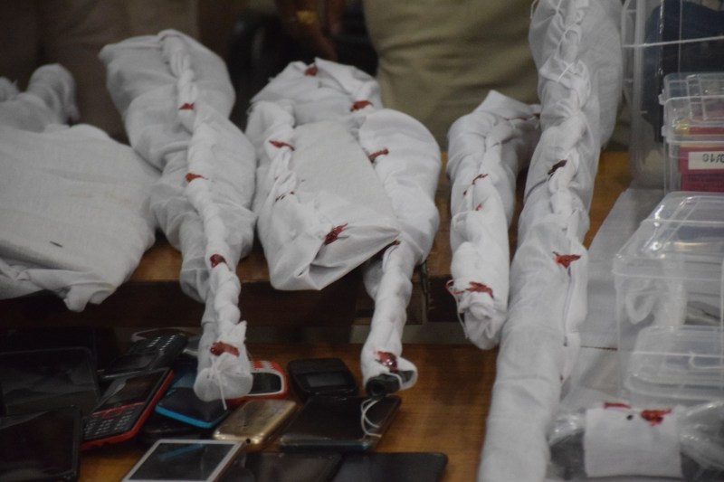 एसपी सिद्धार्थ बहुगुणा का यह कहना कि कार्रवाई सीक्रेट रखी गई थी। ऐसे में सवाल हीे कि सीक्रेट किससे रखी गई थी? क्यों महकमे के लोग ही गज्जू को पहले से जानकारी दे देते थे? कांग्रेसे नेता गज्जू सोनकर के भाई सोनू सोनकर ने एक अलग कमरे में कार्बाइन गन एवं 12 बोर की बंदूक रखे जाने की जानकारी दी। एक देशी रिवॉल्वर साथी रजनीश वर्मा के पास होना बताया। बड़े भाई गज्जू के पास कई अन्य हथियार होने की बात कही। पुलिस ने गज्जू को पकड़ा, तो उसके पास से देशी पिस्टल एवं पांच राउंड लोड मैग्जीन मिली। गज्जू और सोनू की निशानदेही पर कमरे में रखे लोहे के बॉक्स को खोला गयाए तो उसमें हथियारों का जखीरा मिला। दो देशी 9 एमएम कार्बाइन, दो 12 बोर डबल बैरल बंदूक, दो सपोर्टटिंग राइफल, दो पिस्टल, देशी रिवॉल्वर, 4.5 एमएम रिवॉल्वर, पांच एयर गन, 19 मैग्जीन और विभिन्न बोर के 1478 राउंड बरामद किए गए। खेरमाई मंदिर के पास रहने वाले फड़ मैनेजर रजनीश वर्मा के घर पर दबिश दी गई, तो वह घर में नहीं मिला। घर के बाहरी कमर में कारतूस से लोड देशी रिवॉल्वर बरामद हुई। आरोपियों के सामूहिक कब्जे के एक मकान की जांच में स्टील के दो फरसे, खडग़, बका, छोटी कुल्हाड़ी, जंगली जानवर की दो सींगों के टुकड़े बरामद हुए।