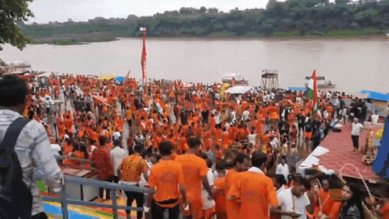 कंधे पर कांवड़, हाथों में प्रकृति के शृंगार के लिए देववृक्ष और होंठो पर ‘बोल बम’ का नारा। सावन मास के दूसरे सोमवार को गौरीघाट से हजारों कांवडिय़ों का जत्था जब शहर के विभिन्न गलियों और चौराहों से गुजरा तो सभी राहगीर मंत्रमुग्ध होकर ‘हर हर महादेव’ का उद्घोष कर उठे। भक्ति के ज्वार पर मेघों ने भी आशीष बरसाया, लगा मानो पूरी संस्कारधानी ही शिवमय हो उठी। 32 किलोमीटर लंबी यात्रा में कांवडिय़ों ने गौरीघाट से नर्मदा जल लेकर कैलाश धाम मटामर में भोलेनाथ का जलाभिषेक किया। प्रकृति को हरा-भरा रखने के लिए कैलाश धाम पहाड़ी में देववृक्षों का रोपण भी किया गया।