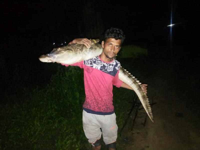 मड़ई तालाब के किनारे अंकित सेंगर के खेत में धान की फसल लगी है और खेत से 100 कदम दूरी पर उसका घर है। बीते दो वर्ष से इस क्षेत्र के बिलपुरा और मड़ई तालाब के आसपास मगरमच्छों का कुनबा पहुंचने से कॉलोनी के लोग दहशत में हैं। अंकित ने बताया, शनिवार रात 12.30 बजे वह खेत में मवेशी भगाने गया था। लौटते समय मेड़ पर मगरमच्छ था। वह लौटकर घर पहुंचा और डंडा लेकर मगरमच्छ भगाने की कोशिश की तो वह डंडा को दांत से पकड़कर हमलावर हो गया। फिर उसकी गर्दन पर पैर रखकर पकड़ा और मुंह बांधकर घर लाया। रात में कमरे में बंद कर दिया ताकि किसी को नुकसान न पहुंचा सके। वन विभाग की रेस्क्यू टीम के प्रभारी गुलाब सिंह राजपूत टीम के साथ रविवार दोपहर 12 बजे मौके पर पहुंचे और मगरमच्छ को सतर्कतापूर्वक वाहन में रखकर खंदारी जलाशय ले गए। टीम में राम विनोद मांझी, अजीत गग्र, लखन बर्मन, राजेंद्र ठाकुर, सर्प विशेषज्ञ रज्जू शर्मा एवं संदीप शामिल थे।